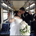 加拿大女子阿曼達?霍德森5年前搭乘公共汽車時,朋友跟她打賭,如果她敢親吻下一站上車的首位男子,就可贏得40加元。為了贏得賭局,她壯著膽子親吻了正要上車的陌生小伙布倫丹?邁爾斯。但一吻之后,她竟與邁爾斯一見鐘情并墜入愛河。今年2月16日,阿曼達和邁爾斯在公共汽車上舉行了婚禮,為這段“巴士奇緣”畫上完美的句號。