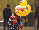 聚焦秋色:小女孩手拿“小黃鴨”氣球