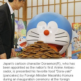 Japan's beloved cartoon robo-cat Doraemon took on a new role Wednesday as a charm ambassador in a bid to promote the nation's culture and win the hearts of future world leaders.