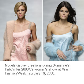 A model displays a creation during Blumarine's Fall/Winter 2008/09 women's show at Milan Fashion Week February 19, 2008.