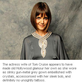 Katie Holmes turned out in glamorous gun-metal grey at the costume designer awards in Los Angeles.