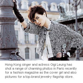 Hong Kong singer and actress Gigi Leung has shot a range of charming photos in Paris recently for a fashion magazine as the cover girl and also pictures for a top-brand jewelry flagship store.