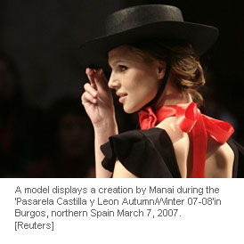A model for Italian fashion designer Valentino presents one of his creations during his Autumn/Winter 2007/08 ready-to-wear fashion collection in Paris February 28, 2007. [Reuters]