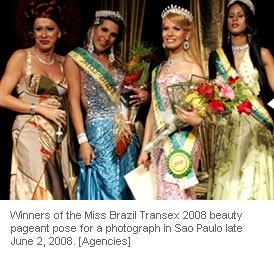 Contests parade during the Miss Brazil Transex 2008 beauty pageant in Sao Paulo late June 2, 2008.