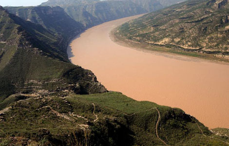 Photo taken on Sept 23, 2011 shows the scene of a turning of the Yellow River in Shilou, north China's Shanxi province.