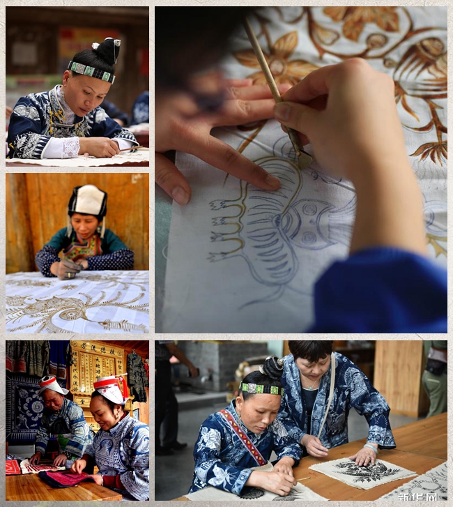 The characteristic patterns on Miao clothing are accomplished through a painting skill known as batik.