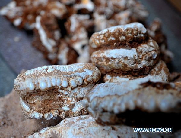 Photo taken on Sept. 6, 2010 shows fossilized elephant teeth discovered in Enshi Tujia and Miao Autonomous Prefecture, central China's Hubei Province. Elephant fossils, dating back to 500,000 years, were discovered at Enshi on Sept. 1, 2010. (Xinhua/Song Wen)