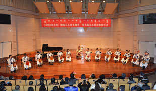 As a celebration of the 60th anniversary of Inner Mongolia Normal University (IMNU)'s arts disciplines, Chi Baolege performed a concert of matouqin, or horse-head fiddle, in the university on Jan 16.