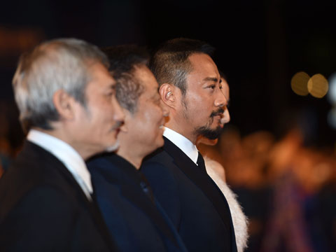 "The Taking of Tiger Mountain" crew appear in 2015 Beijing International Film Festival, April 23, 2015, in Beijing. [Photo by Chen Yehua/Xinhua] |