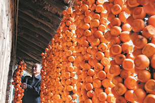 A villager made dried persimmons in Maquangou village, Pinglu county, Shanxi province, Nov 7.