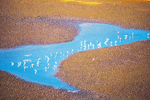 A flock of egrets looked for food in the Fenhe River scenic area, Taiyuan, Shanxi province, Nov 11.