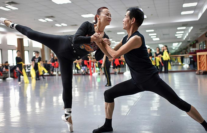 The elegant ballet is not exclusive for young girls and boys. Dance troupe members of the university for the elderly in Hubei province stand on tiptoes and perform ballet.
