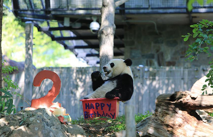 The Smithsonian's National Zoo in Washington DC, the United Statesheld a celebration for giant panda Beibei's two-year-old birthday on Aug 22, which attracted lots of visitors.
