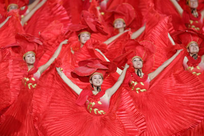 Performers take part in the opening ceremony for the 2007 FIFA Women's World Cup before the match between Germany and Argentina at the Hongkou Football Stadium in Shanghai, September 10, 2007. [Reuters]