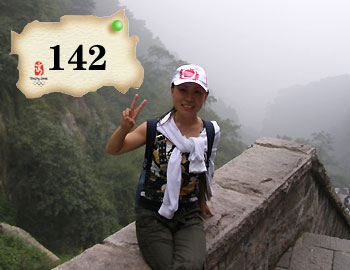 Athens swimming gold medallist Luo Xuejuan carries the torch past the Temple of Heaven in Beijing during the 2004 Olympic Torch relay in this file photo dated June 9, 2004. According to Xinhua, Luo is expected to be China's first relay runner to carry the torch following first torchbearer Alexandros Nikolaidis during the 2008 torch relay, which starts on March 24, 2008. [Xinhua]