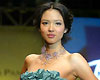 Zhang Zilin, who was crowned Miss World 2007, presents a creation by Taiwan designer Pan Yiliang in Beijing March 31, 2008. Zhang recently finished recording an Olympic song called 'The world follows me'. [Qianlong.com]