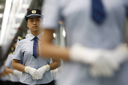 Beijing subway controllers stand on a subway platform inside a new station near the Olympic Stadium during a media tour in Beijing July 19, 2008. Beijing opened three new subway lines on Saturday, delayed from a planned late-June start but just in time to carry passengers before next month's Olympics. [Agencies]