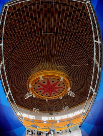 The ceiling of the newly-renovated Worker's Indoor Arena (BWIA) in Chaoyang District of Beijing is seen in this picture taken on May 19, 2008. The venue will host the 2008 Olympic boxing and Paralympic judo events. [Xinhua]