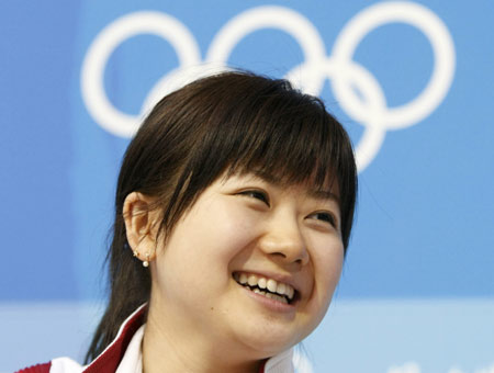 Japanese table tennis player Ai Fukuhara speaks to the media during a news conference at the Olympic Village in Beijing, ahead of the 2008 Olympic Games, August 7, 2008. [Agencies]