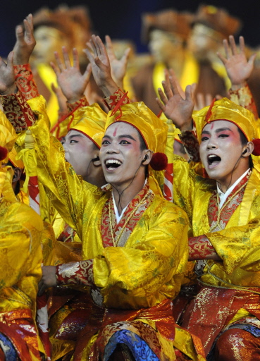 Performers take part in the opening ceremony of the Beijing 2008 Olympic Games at the National Stadium, August 8, 2008. [Agencies]