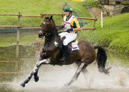 Australia's Clayton Fredricks rides Ben a Long Time during the equestrian eventing cross country competition at the Beijing 2008 Olympic Games in Hong Kong August 11, 2008. [Agencies]