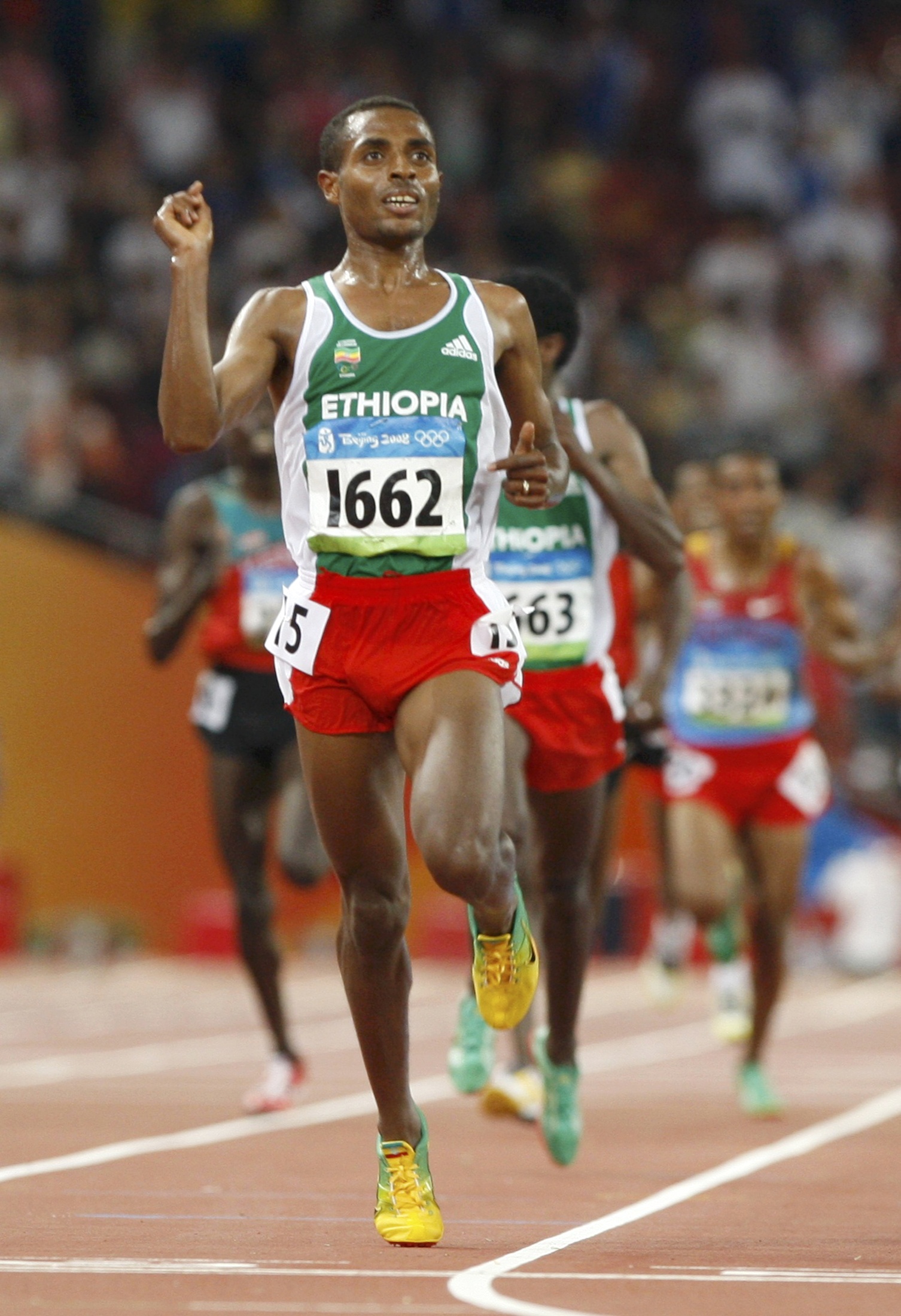 Kenenisa Bekele of Ethiopia runs to win the men's 10,000m final of the athletics competition in the National Stadium at the Beijing 2008 Olympic Games August 17, 2008.  [Agencies]