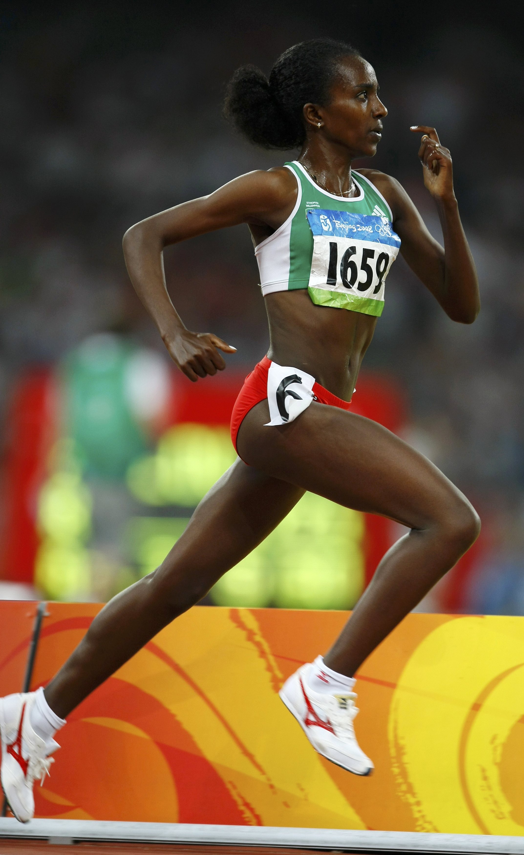 Tirunesh Dibaba of Ethiopia runs on her way to winning the women's 5000m final of the athletics competition in the National Stadium at the Beijing 2008 Olympic Games August 22, 2008. [Agencies]