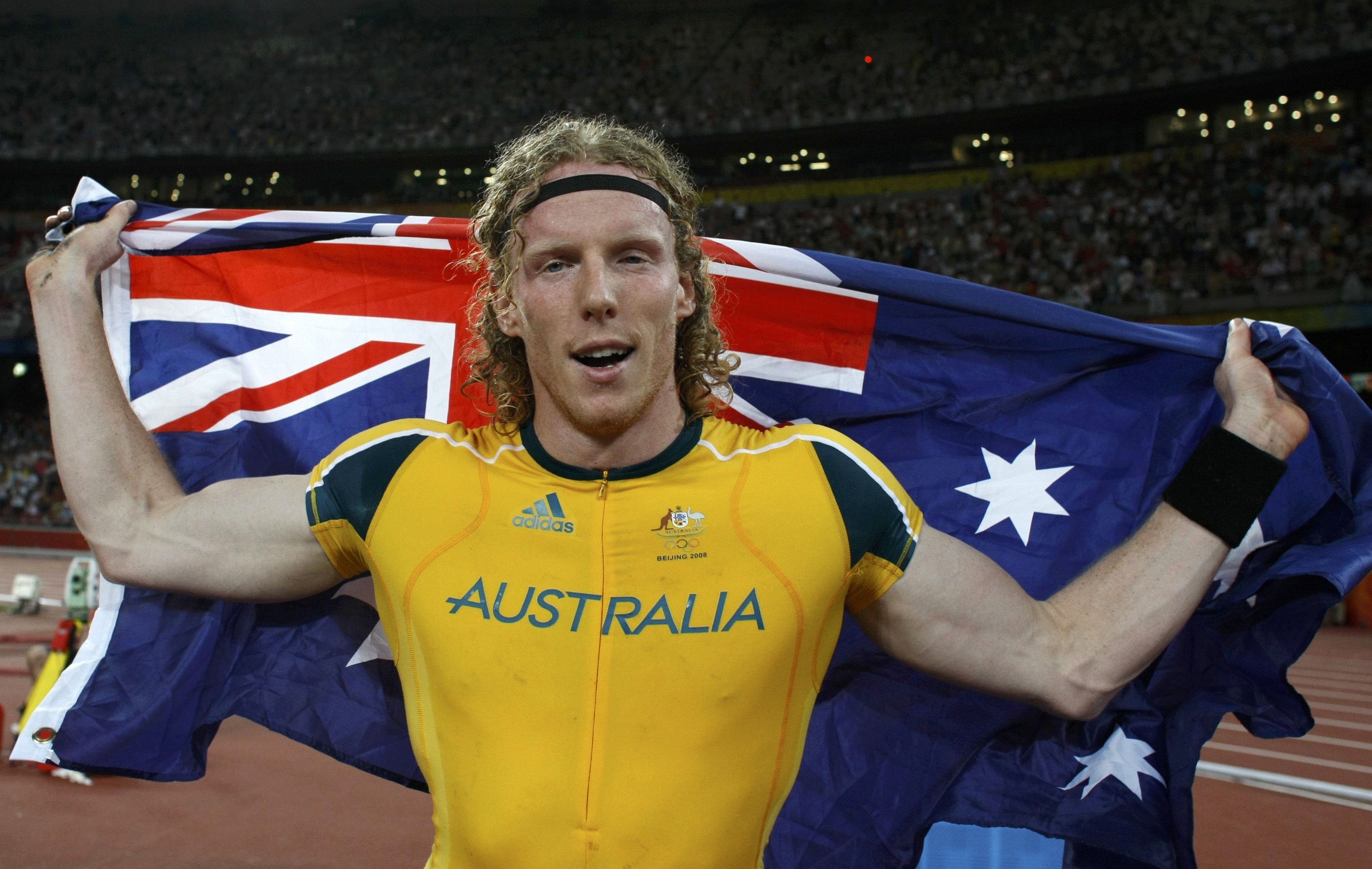 Steve Hooker of Australia celebrates winning the gold medal in the men's pole vault final of the athletics competition in the National Stadium at the Beijing 2008 Olympic Games August 22, 2008.[Agencies]