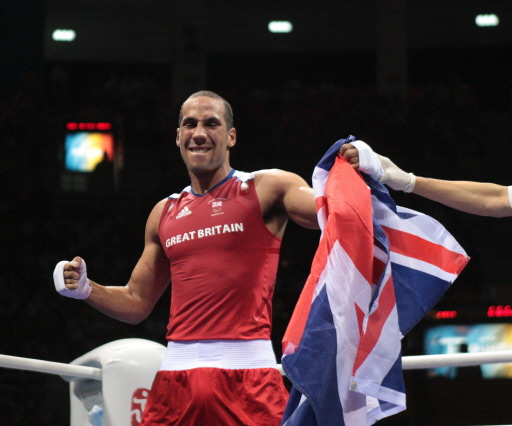 | Great Britain's James Degale celebrates his victory over Cuba's Emilio Correa Bayeaux during their 2008 Olympic Games Middleweight (75 kg) final boxing bout on August 23, 2008 in Beijing. [Agencies] |