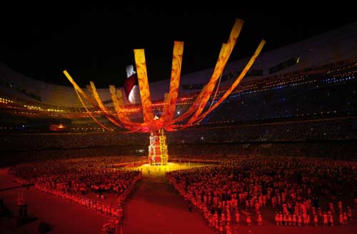 Dancers perform during the closing ceremony of the 2008 Beijing Olympic Games at the National Stadium also known as the "Bird's Nest" on August 24, 2008. [Agencies]