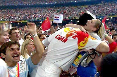 Yao Ming of China gives Basketball player Lauren Jackson of Australia a hug in the Beijing National Stadium during the Closing Ceremony for the 2008 Beijing Olympics. [Agencies]