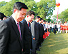 The launching ceremony began with one minute of silence to mourn the victims in the earthquake in Sichuan. Performances and ceremonies were simplified and downscaled.