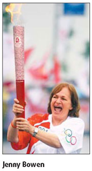 "My only reason for running are the children," said Bowen. The 63-year-old American mother of two adopted Chinese girls has helped more than 15,000 children through her Half the Sky Foundation, which was set up in 1998. "To me, it (the running with the torch) gives them a voice."