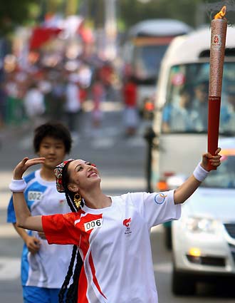 The torchbearers included people from the Hazak, Korean, Russian and Xibo ethnic groups.