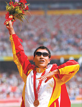 Qi's race was the final athletics event held over the past 10 days at the Bird's Nest; and 1,041 athletes from 118 countries participated in 160 final events, which broke 122 world records.