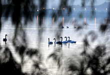 Swans paddle in the Wangguan reserve of the Yellow River Wetland in Sanmenxia. [Photo/ henan.gov.cn ] |