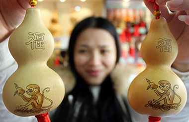 As the Year of the Monkey comes, handicrafts related with the zodiac monkeys have become particularly popular throughout the country.