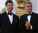 Pitt and Clooney pose on the red carpet at the Film Festival in Venice