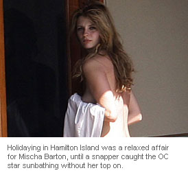 Holidaying in Hamilton Island was a relaxed affair for Mischa Barton, until a snapper caught the OC star sunbathing without her top on.