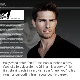 Hollywood actor Tom Cruise has launched a new Web site to celebrate the 25th anniversary of his first starring role in a movie--as a "thank you" to his fans for supporting him throughout his career.
