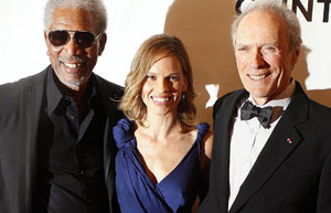 Actress Hilary Swank arrives for a screening of the film "Invictus", directed by Clint Eastwood.