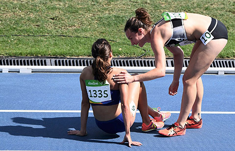 "I went down and I was like,' What's happening, why am I on the ground?' Then suddenly this hand was on my shoulder, like 'Get up, get up, we have to finish this'. That girl is the Olympic spirit right there."