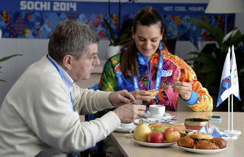 International Olympic Committee (IOC) President Thomas Bach arrives in his room in the coastal Athlete's Village at the Sochi 2014 Winter Olympics February 1, 2014. [Photo/Agencies]
