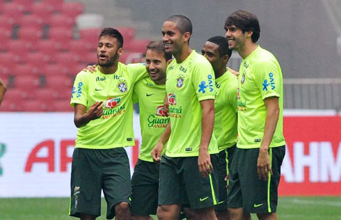 Brazilian soccer stars train for friendly match in Beijing
