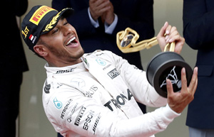 Jubilant Hamilton celebrates after rain-soaked Monaco GP win