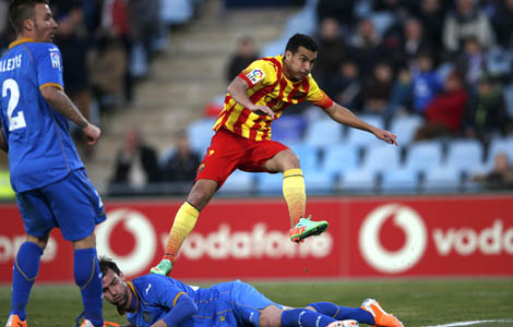 Pedro Rodriguez filled in for Barcelona's missing star forwards by netting a hat trick in 10 minutes before setting up Cesc Fabregas twice as the visitors erased a two-goal deficit in a wild 5-2 win at Getafe on Sunday.