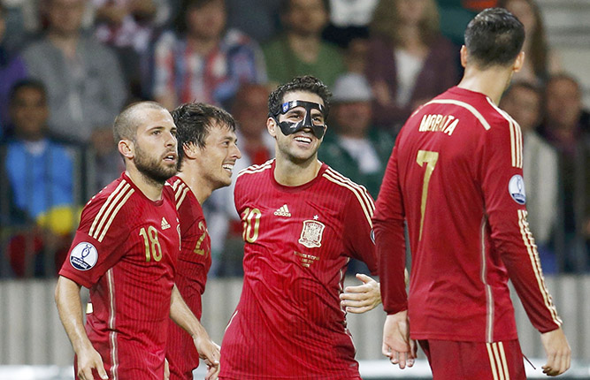 2015-06-15 10:17Spain edges Belarus 1-0 in Del Bosque's 100th match