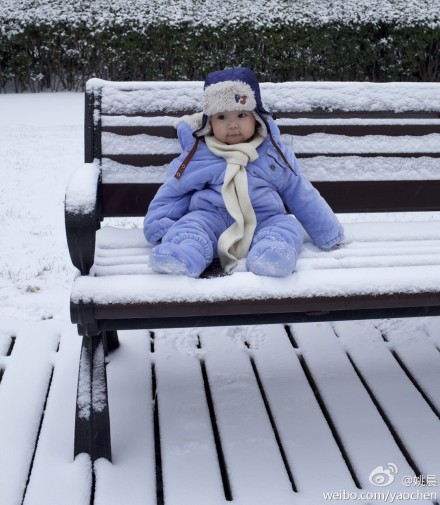 姚晨帶小土豆玩雪 土豆呆萌坐雪堆可愛似洋娃娃