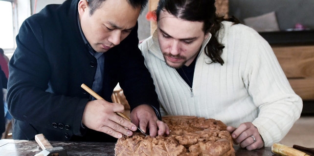 Frenchman engrossed by Dongyang wood carving