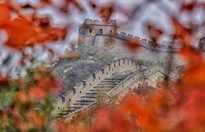 Badaling Great Wall dyed red with autumn leaves